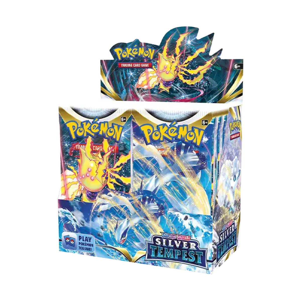 Each Sword & Shield—Silver Tempest booster box contains 36 booster packs. (Each pack contains 10 random cards)